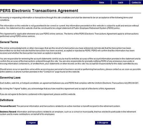 Review the PERS Electronic Transactions Agreement, and then click the I Agree button.