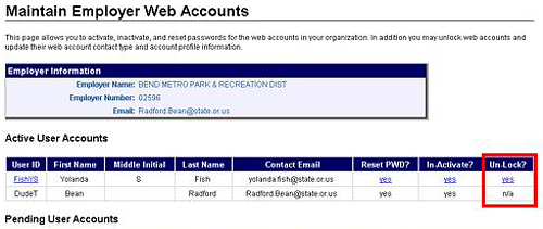 Follow the steps outlined in "Maintaining Employer Web Accounts." |