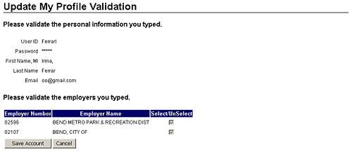 Modify your profile information, as necessary, and then click the NEXT button to view the Update My Profile Validation screen. Note: You cannot delete employer numbers, only add them. Important: An asterisk (*) next to the field name denotes that the field cannot be left blank.