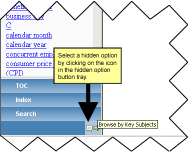Click on one of the icons displayed in the hidden option button tray to view that option. A pop-up dialog box will appear when you roll your mouse over an icon to let you know which option the icon will display.
